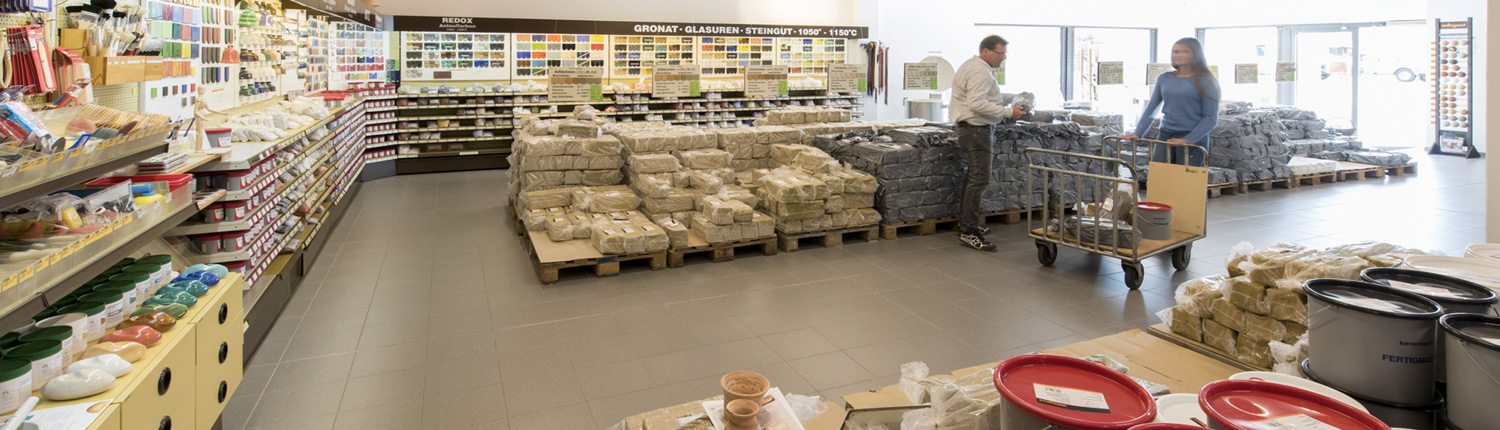In addition to our products for the heavy clay ceramics industry, we also operate a specialist store for private customers, businesses, and self-employed professionals. For over 20 years, you have been able to find not only our own products – GRONAT glazes, ENGOSYN engobes, and REDOX luster colors – but also