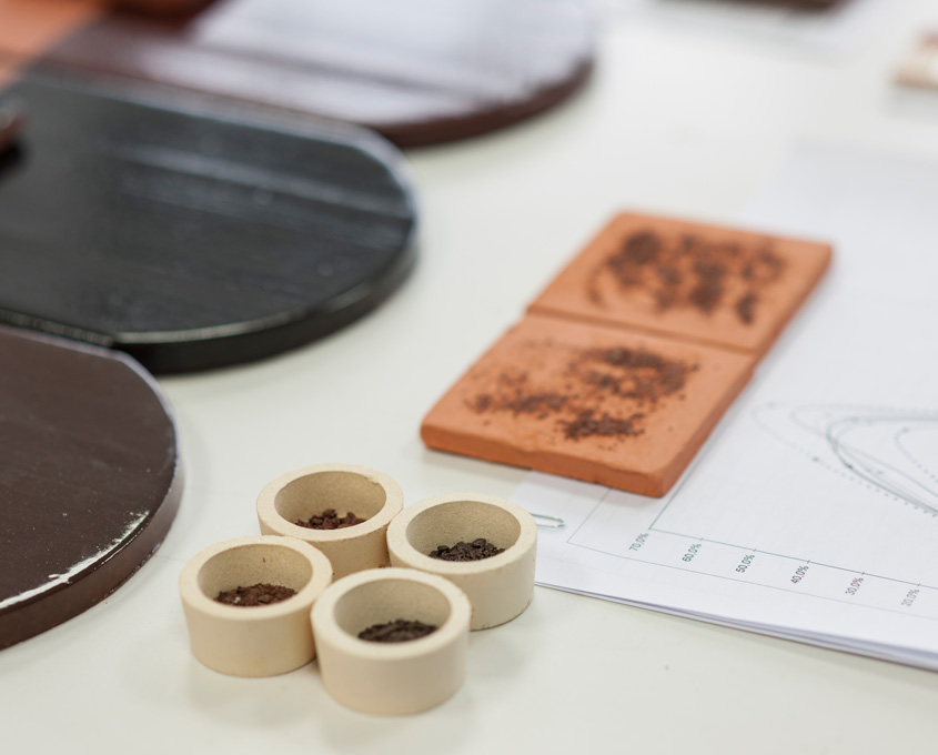 Rohstoffe ändern sich. Immer wieder wechseln Tonqualitäten, weil neue Vorkommen erschlossen werden müssen und sich andere Brennparameter ergeben. Über lange Zeiträume verlässliche Farbtreue zu halten, ist ein aufwändiges, komplexes und anspruchsvolles Vorhaben. Mit Grothe-Produkten bleibt der langlebige Verbund von Tonträger, Farbe und Oberfläche über Jahre konstant in der Herstellung.